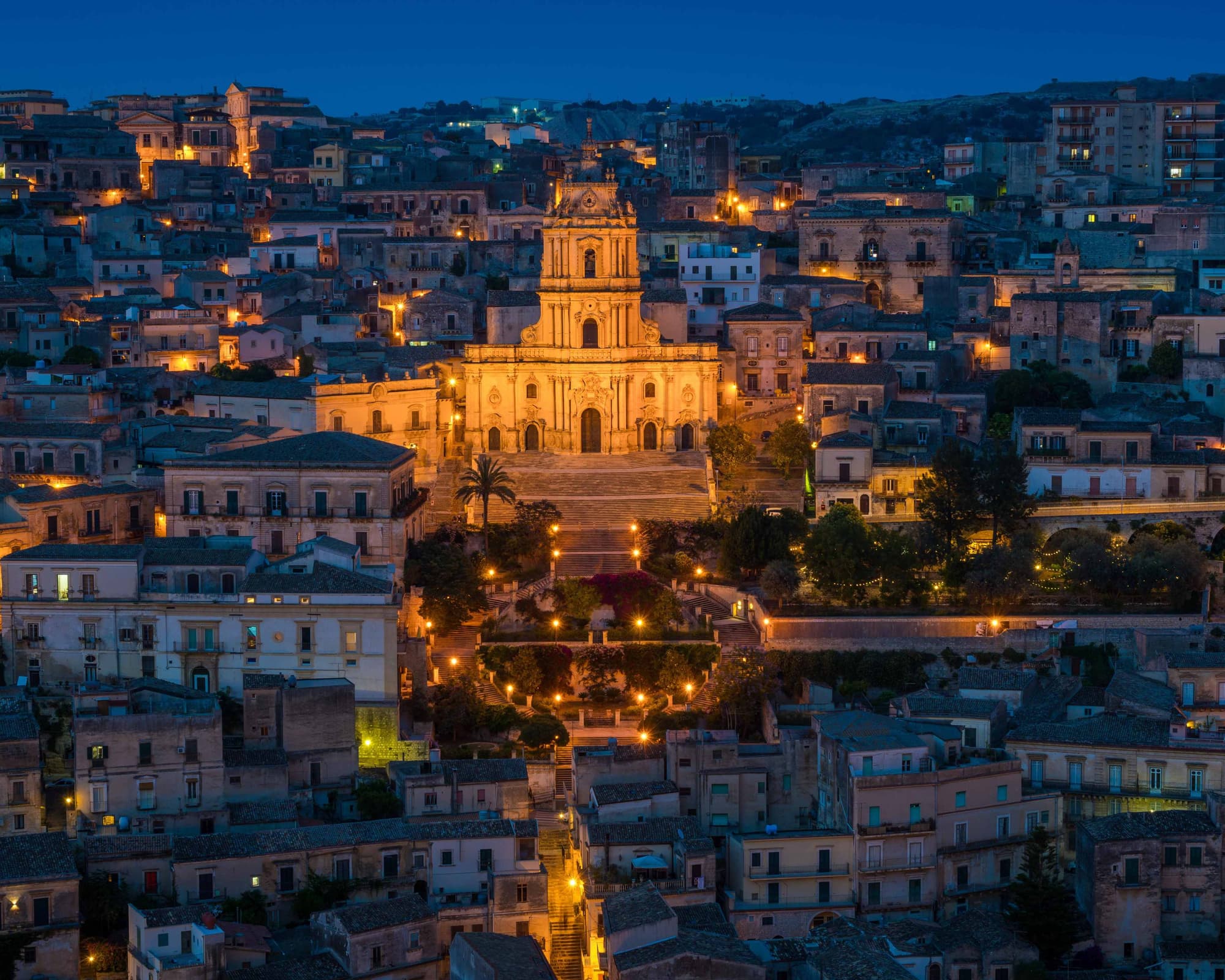 Over de bestemming: Modica, een magnifieke stad in de Val di Noto, in het zuidoosten van Sicilië. Op de plek waar Modica nu ligt, ontstond lang geleden de Arabische stad Mudiqah – een oorsprong die nog altijd te horen is in de huidige naam van de barokstad. Modica bestaat uit twee delen: Modica Alta, de bovenstad, en Modica Bassa, de benedenstad. Modica Alta is het oudste; hier prijkte de Arabische stad. Vanwege ruimtegebrek op de heuvel breidde men steeds verder naar beneden uit, waar tot begin twintigste eeuw nog twee rivieren stroomden. Modica werd daardoor ook wel eens ‘het Venetië van het zuiden’ genoemd. Toen er in 1902 een vreselijke overstroming plaatsvond, besloot men de rivieren droog te leggen. De loop van het water kun je her en der nog altijd volgen. Als je over de Corso Umberto I loopt bijvoorbeeld, die is aangelegd op de plek waar ooit het water stroomde… Duomo di San Giorgio; De bekendste blikvanger van Modica is de Duomo di San Giorgio, een ontwerp van niemand minder dan Rosario Gagliardi, de architect die ook in Noto zorgde voor tal van barokke monumenten vol versieringen.
